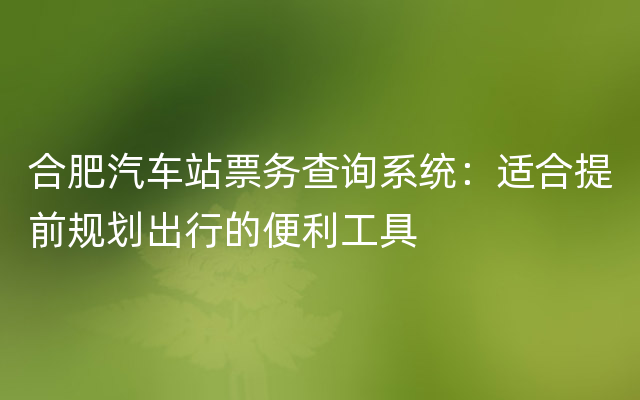 合肥汽车站票务查询系统:适合提前规划出行的便利工具